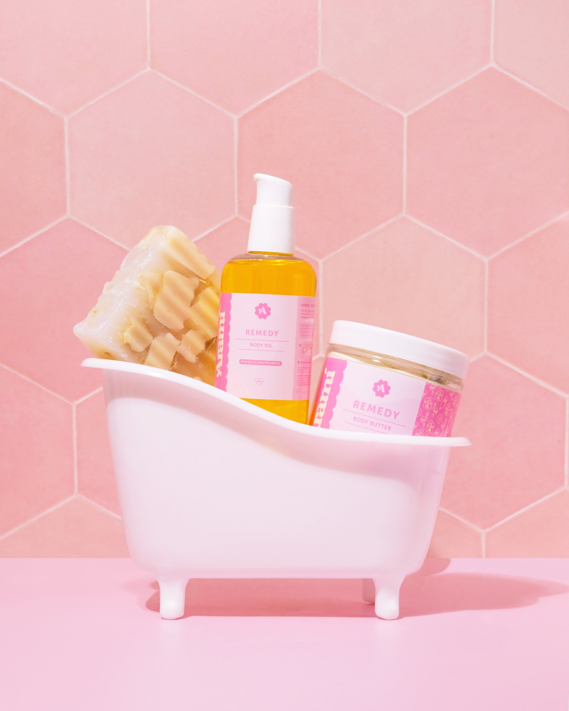 Our 3 step remedy kit is a potent blend of three butters, this kit delivers intense hydration to repair,renew and soften rough, flaky skin. Calendula and Chamomile Oils offer natural anti-inflammatory benefits, soothing irritation and discomfort, while colloidal Powder and Honey help lock in moisture, providing lasting relief. Neem Oil and Beeswax create a protective barrier to prevent further irritation, while Kaolin Clay gently detoxify and rebalance sensitive skin.